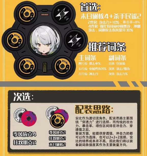 副词条优先选择穿透值,其次可以选择暴击爆伤或者是攻击力加成。
