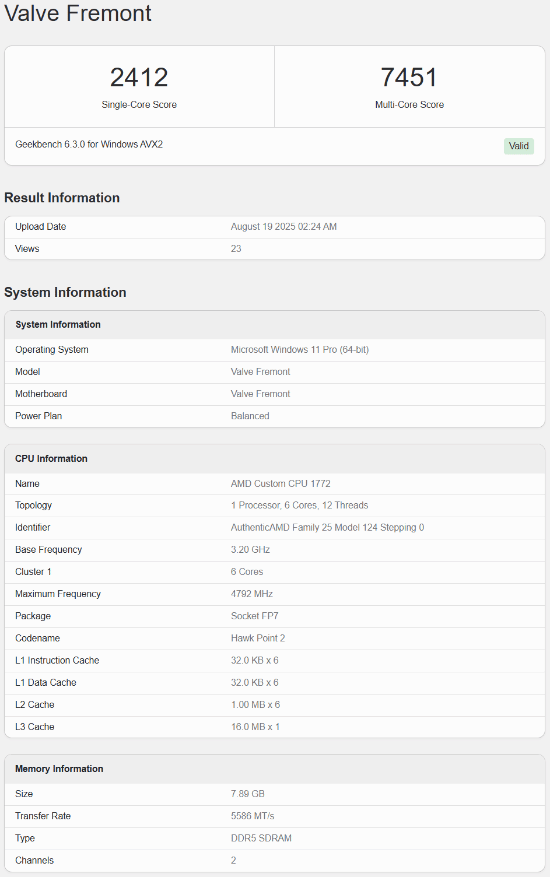 据外网爆料,Valve正开发代号"Fremont"的全新游戏主机,其配置信息已现身Geekbench数据库。