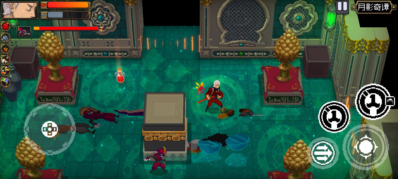 锁定目标的第一击是可以瞬移到敌人面前的,然后你要闪避到门外,然后再进去再闪避,慢慢耗死他就行了