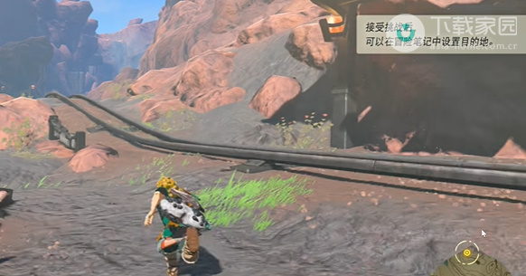 2、接受挑战之后,沿着下图的铁路向前走,然后会看见一个洞口,此时从洞口进入;
