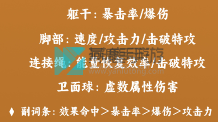 副词条:效果命中>暴击率>暴击伤害>攻击力
