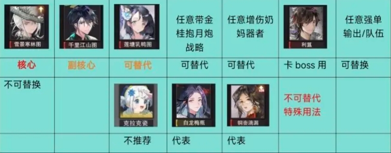(一般参致雪景搭配利簋或千里江山图/或单人,进入有增伤辅助的其他成型队伍,或搭配强度高的其他器者)
