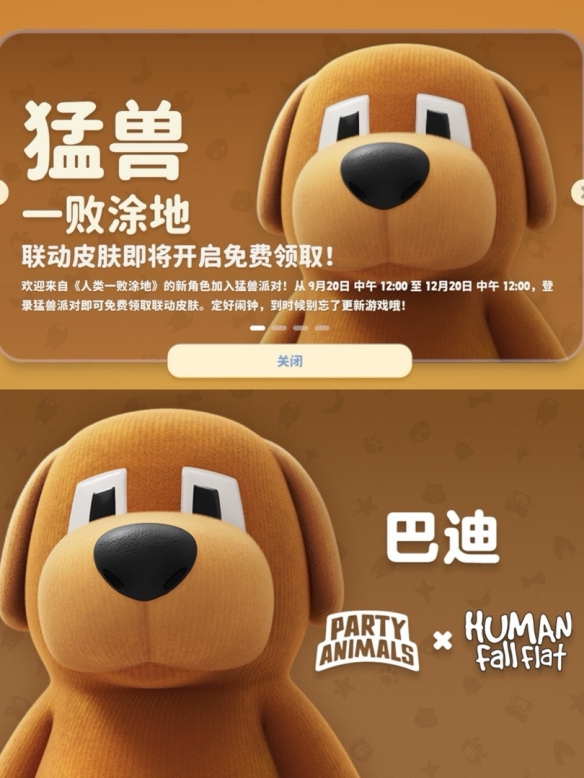 当软萌动物遇上橡皮人,一场物理引擎的狂欢即将上演。《猛兽派对》与《人类一败涂地》联动正式官宣,此次联动活动定于2025年9月20日正式开始,并持续至12月20日。期间,玩家登录《猛兽派对》即可免费领取来自《人类一败涂地》的标志性角色「巴迪」(Buddy)的联动皮肤。