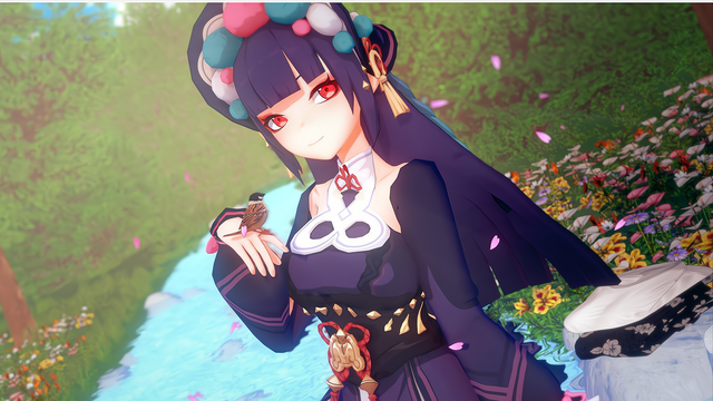 1、云堇的立绘具有浓厚的国风元素,还加入了少量的洛丽塔元素,属于中西结合的画风;