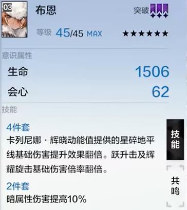 2、意识共鸣搭配推荐:六攻击、六核心被动;