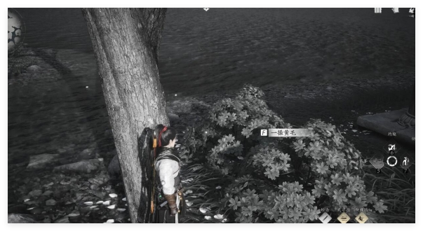 2、继续就可以去存香塔下的梨花树旁去发现有个线索一戳黄毛;