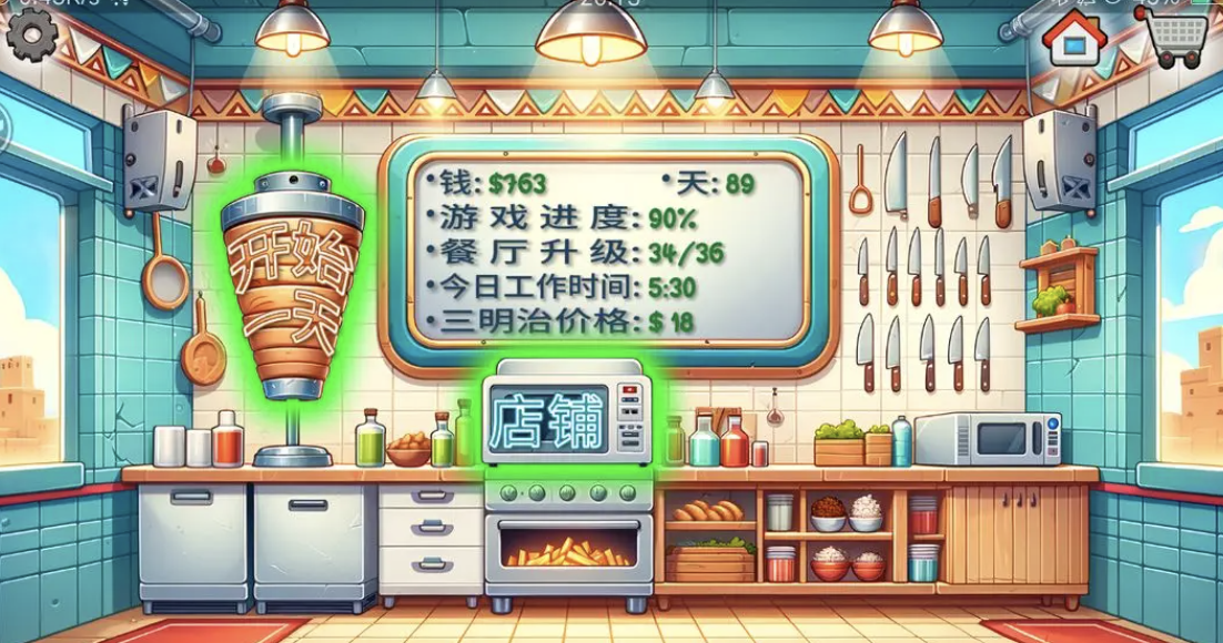 烤盘1:加收入 加难度 2:加速 不会烤糊 3:加速 自动弹上桌