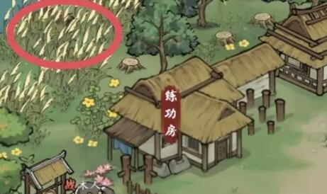 1、第一个宝箱是在练功房的附近,在左侧的那片芦苇中搜索就可以找到。