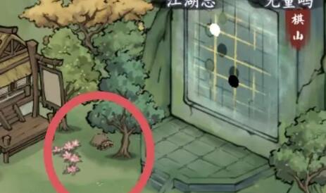 3、第三个宝箱要前往棋山,在棋山前面左侧树底有石头,探索石头即可。