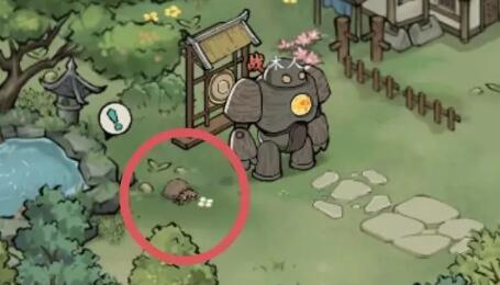 4、第四个在池塘的左边石头那里,具体位置如下图:
