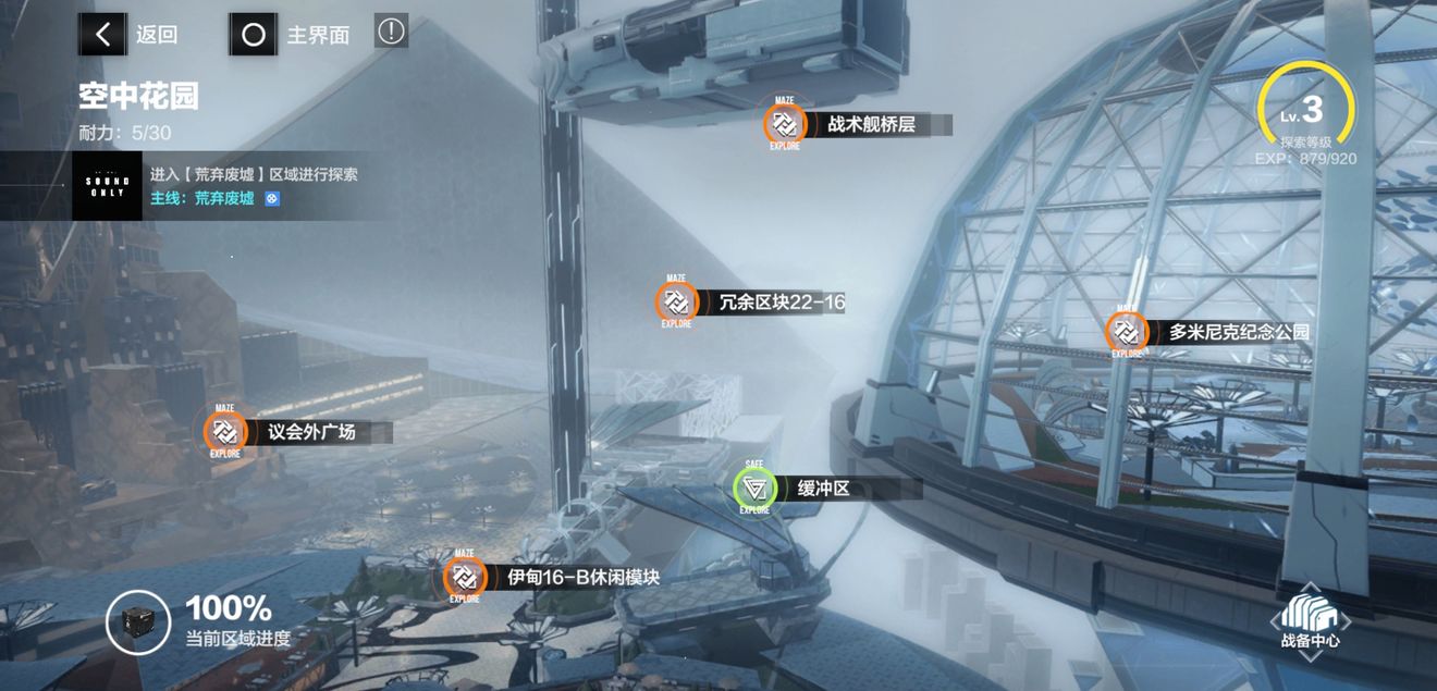 3、大家可以等待空中花园主线开放之后,再进入废墟探索。