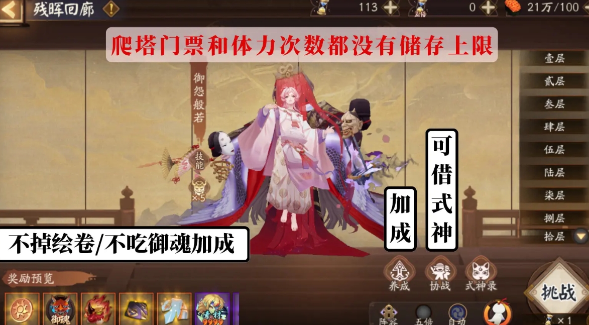 ②1个宝箱≈6600积分+若干御魂,通关可获得宝箱钥匙