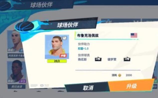 布鲁克洛佩兹为伙伴的加成是增强扣篮,使用能够扣篮的角色还是非常值得入手的一个角色。