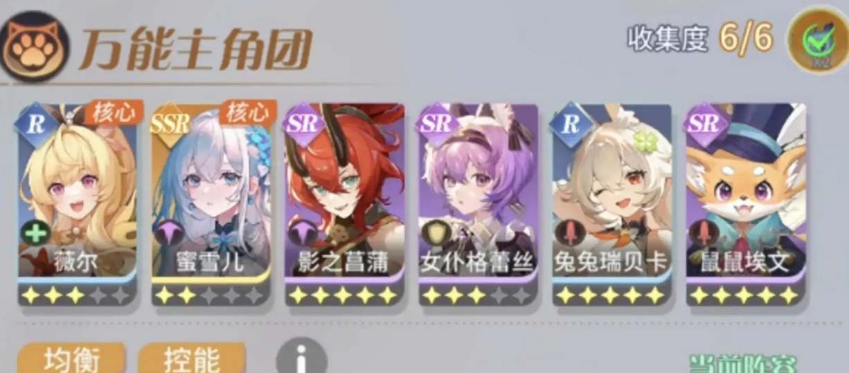 这是最适合新手玩家的阵容,零氪也可以轻松成型,虽然有很多低级卡,但是后期通过养成都是可以到SSR级别的,提升空间很大。