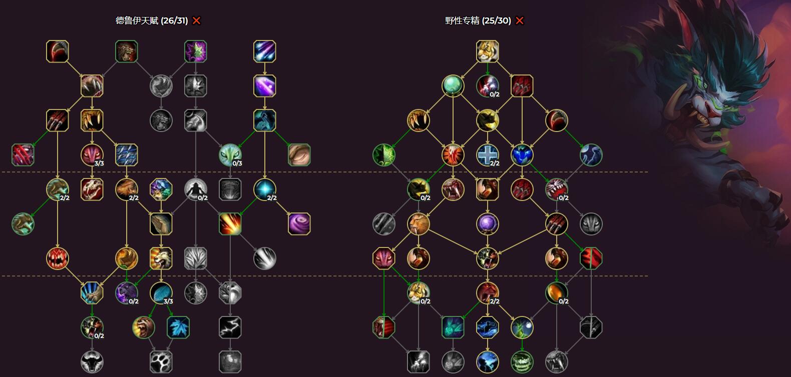 由于前夕等级只有60级,因此通用天赋树只有26点、专精天赋树只有25点天赋可用。加点如下图: