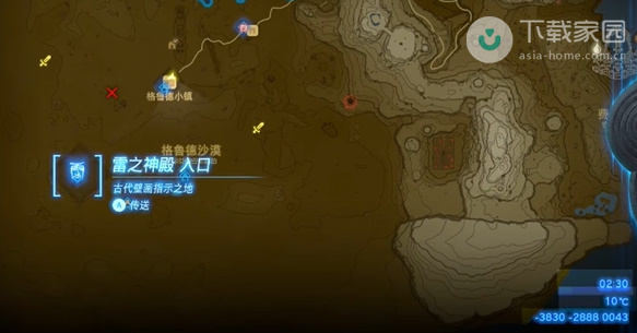 1、首先先到达雷之神殿入口位置,之后进入并来到升天室;