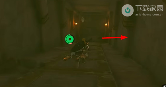 3、继续向前面走,走到下图位置会看见一处夹缝,此时需要玩家从这里进入,进入之后走到石板上,石板会自动下降;