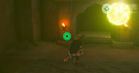 4、到达地面之后,会看见一个金色的圆球,此时玩家需要将其消灭,之后将前面的石板移开;