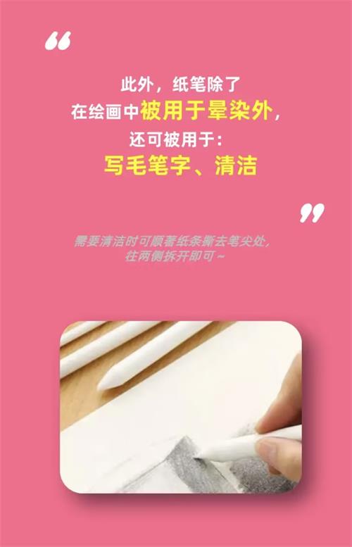答:素描晕染、用于清洁、写毛笔字