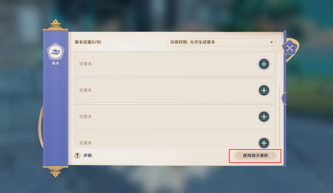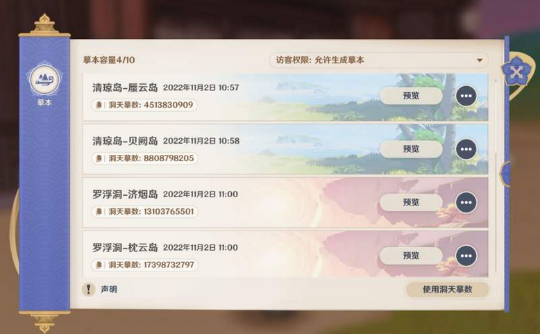 4、选择想要生成的洞天区域,点击[生成摹本],就完成摹本的生成了。