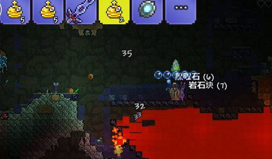 4、破坏并采集狱岩石,狱岩石破坏后,会生成熔浆。