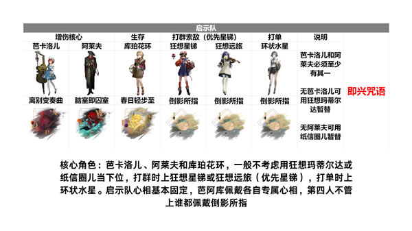 本篇为大家带来的是重返未来1999的3.2版本全部体系配队搭配推荐,包含薪血、启示、余辉、电能、刺杀、天使娜娜、马库斯升阶、虚构集仪式等,不同的队伍在当前版本有一定的调整。