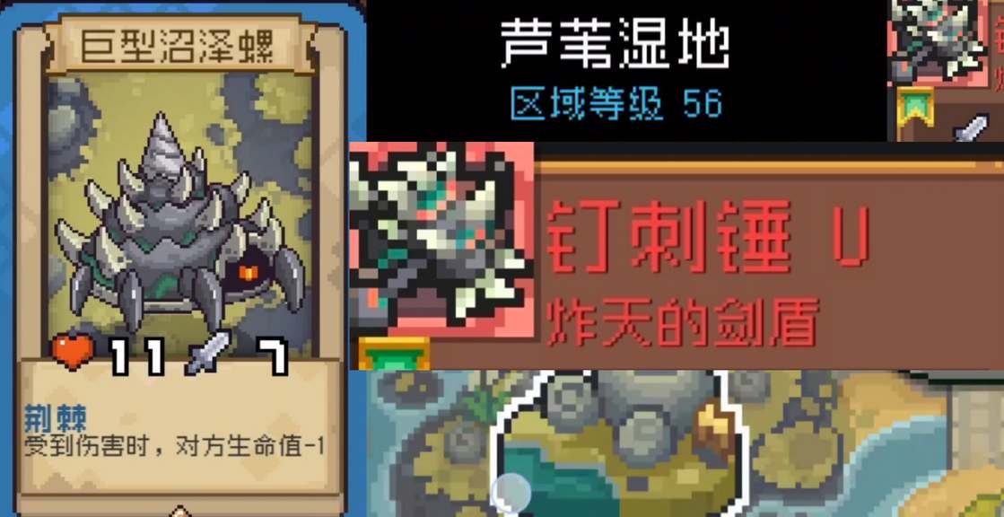 击败芦苇湿地Boss巨型沼泽螺,有概率会掉落钉刺锤。