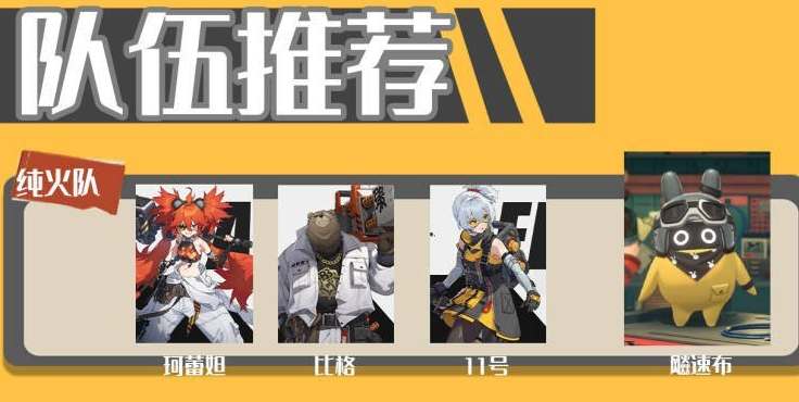公测版本推荐搭配纯火队使用,搭配比格和11号,既可以触发协同效果获得加成,同时也可以打出稳定可观的输出。