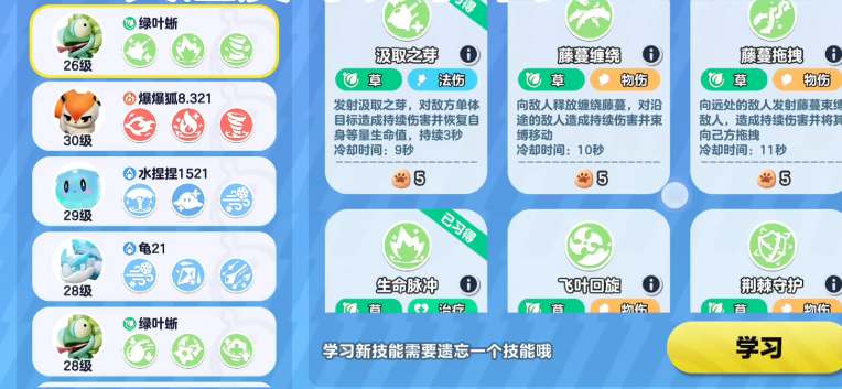 除了专属技能之外,另外两个技能推荐选择【飞叶回旋】和【叶刃风暴】,尽量选择远程攻击的技能。