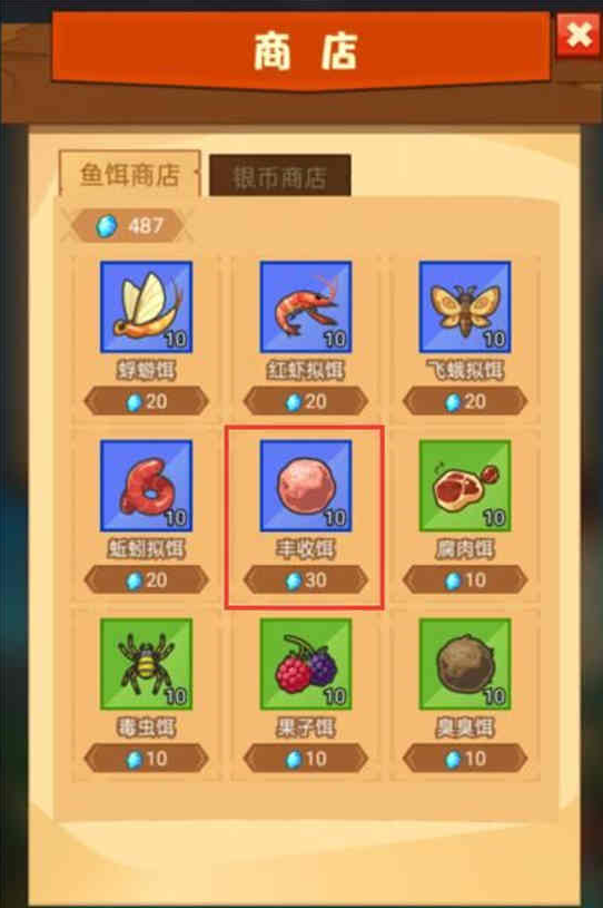 2、我们通过钻石购买获得丰收饵,价格为30钻石一个。