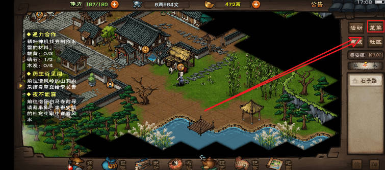 1、打开游戏,点击右上角菜单。