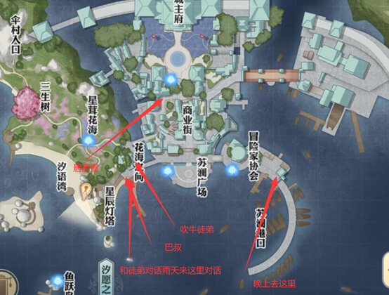 找到吹牛徒弟梁思进(526.329),下雨天气去(529.307)对话,晚上在港口(810.291)见面,夜晚到图中位置探寻,会出现一只熊,和他对话,对局,胜利后获得戏精碎片3。