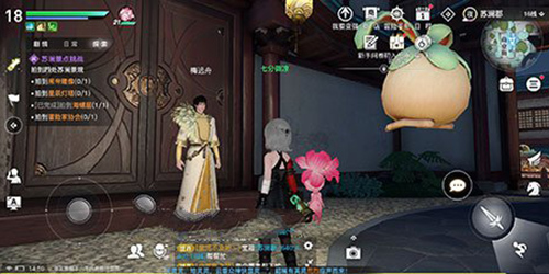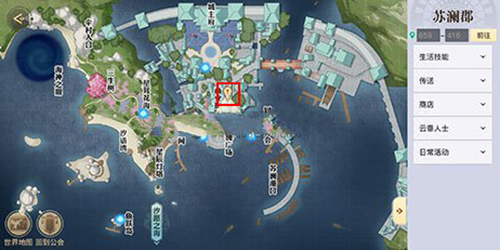 玩家先来到这个苏澜郡这里,然后需要在商业街右边,可以在一个房子的前面,看到一个叫做梅远舟的NPC,这个角色就是游戏中最富有的人了。
