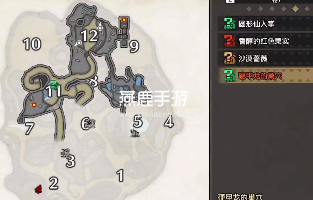 1、我们先接取沙原的探索之路,然后按x,搜索硬甲龙的巢穴,即可看见11区有;