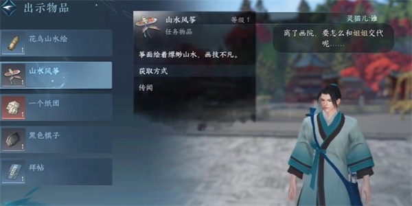 2、接着玩家需要与NPC对话,之后即可获得山水风筝;