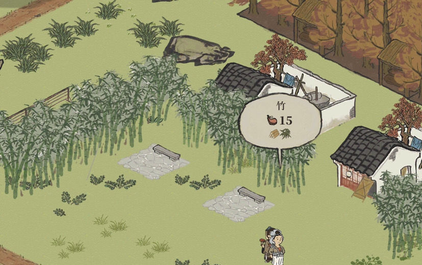 2、如下图所示,用松烟墨修复女娲画院之后,即可看到一片开发后的竹林。
