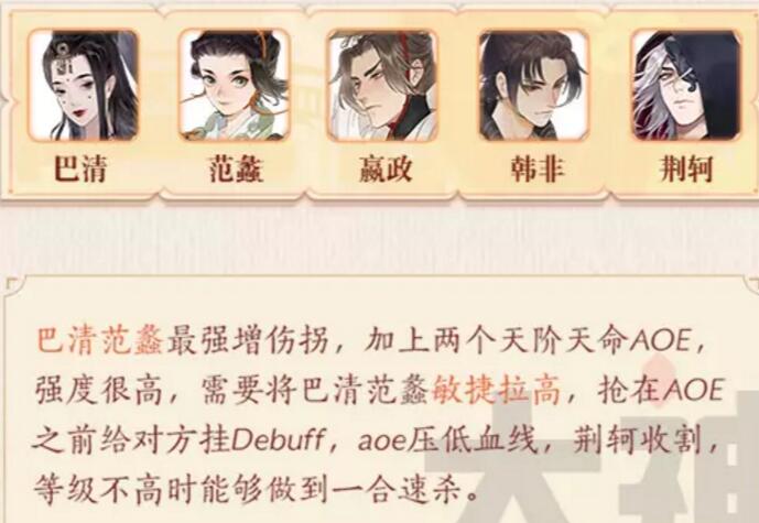 巴清+范蠡+嬴政+韩非+荆轲(PVP、群体副本)