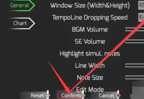 3、在这里可以设置自制谱的数值以及背景音乐,然后再点击CONFIRM试玩。