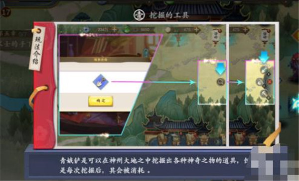 挖宝首先要青娥铲,我们每天可以免费得到系统增送的十把铲子。另外当我们完成指定任务或者经历奇遇后也是可以得到该道具的。如果这些道具都使用殆尽了而小伙伴好想挖宝的话,我们可以去商店中购买,需要消耗我们二百五十个魂玉就能买到五把铲子