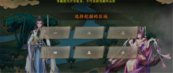 ①、在开启挖宝之后,系统会弹出六个区域来进行选择。区域的选择对于结果是有一定的影响,但是玩家无法通过任何方式来进行判断,所以说选择的时候就全凭运气和玩家个人的喜好吧,随便选择就行了