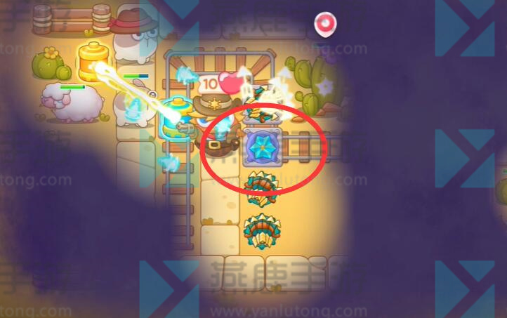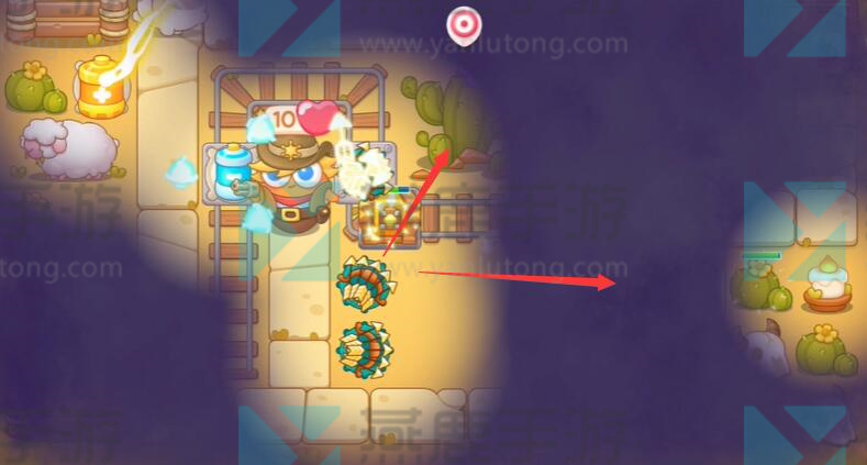 3、之后再放一个弓箭,两个炮塔一起将轨道上面的宝箱打掉。
