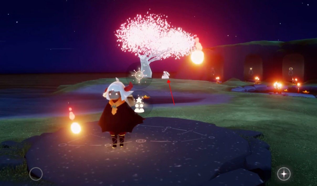 1、首先登陆游戏,向后走,可以看到遇境里有一颗漂亮的樱花树;