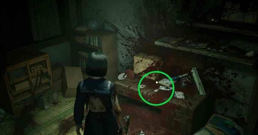 穿过暗门后的走廊进入房间,即可在沾血的桌子上拾取到这枚御守。