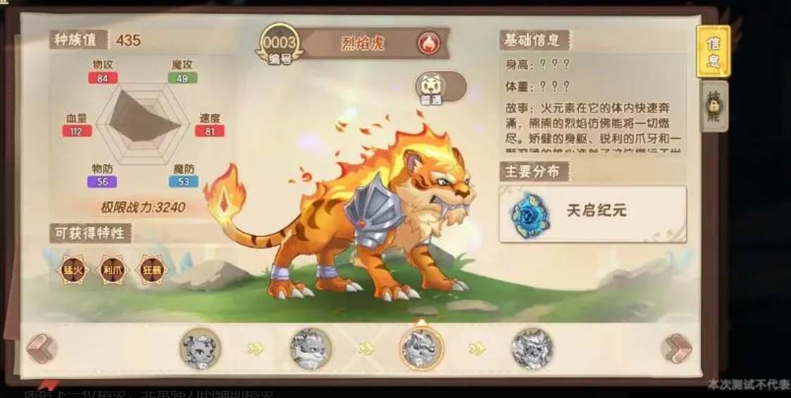 1、乖乖虎:可以进化成烈焰虎,攻守兼备属性均衡,具有较高的速度,可以抢先手攻击,实力不俗。