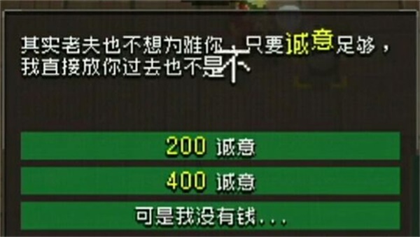 战魂铭人中的万骨坊主会给玩家三种选择:200诚意、400诚意、可是我没有钱,很多玩家不知道怎么选,那么战魂铭人万骨坊主选什么好?下面小编给大家带来问题的解决方法,一起看看吧。