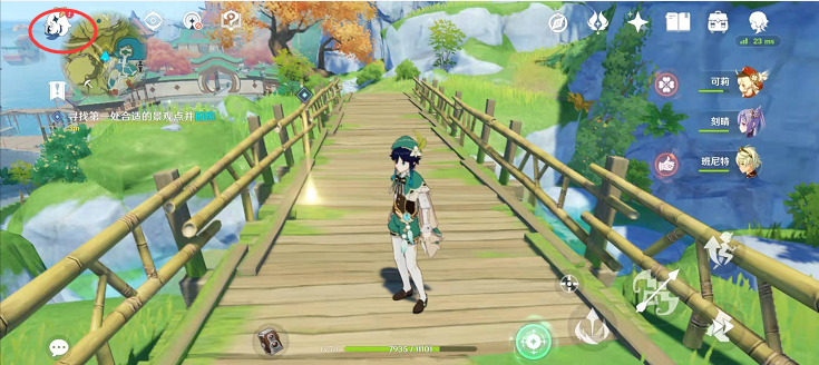 1、点击主界面左上角的派蒙按钮,进入菜单界面;