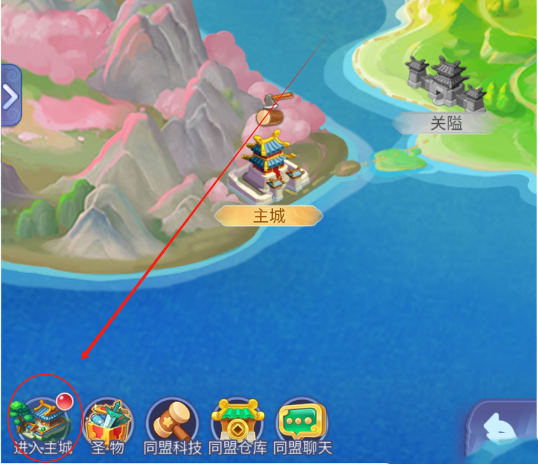 玩家在同盟远征界面点击进入主城,可进入同盟建设玩法页。