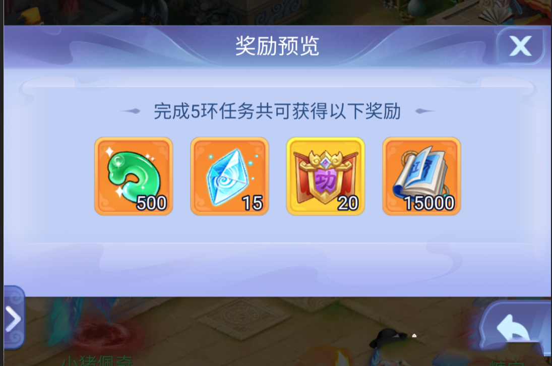 完成5环任务共可获得500仙玉、15宝石精华、20远征赛事积分、15000同盟科技点(可用于提升同盟科技)