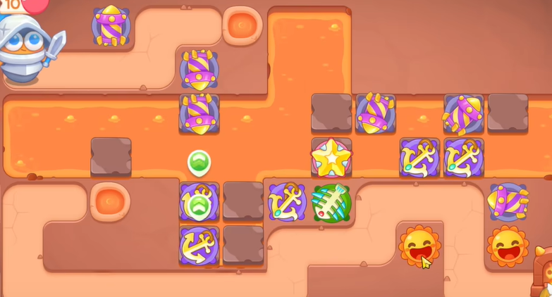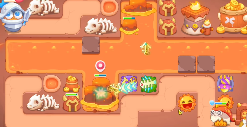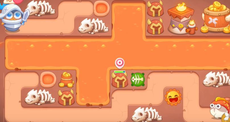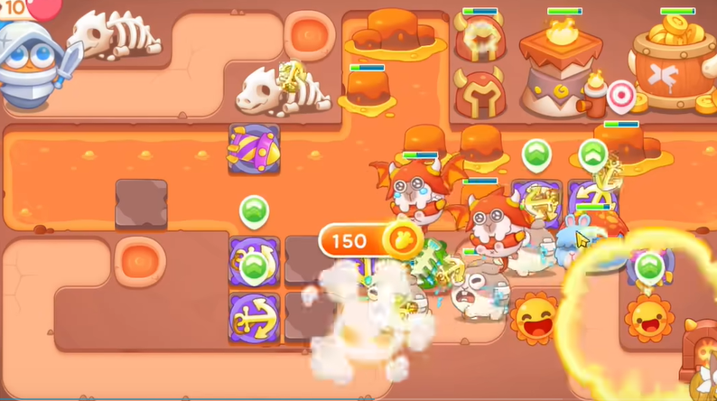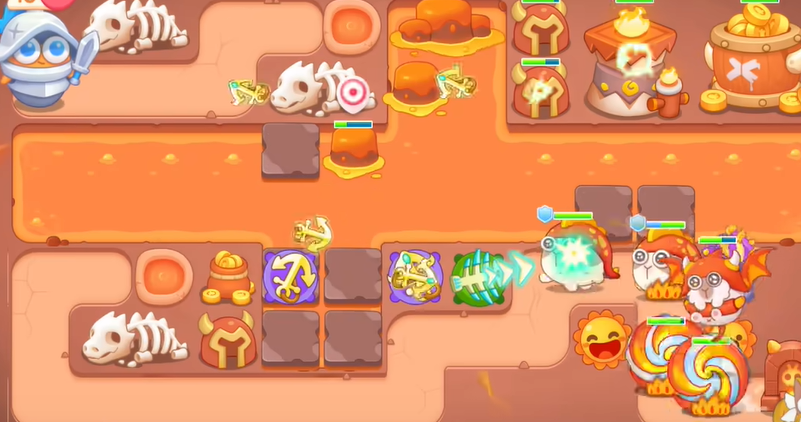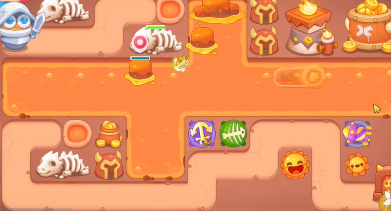 2、有金币建立导弹和船锚,船锚直接锁定岩浆上的岩石。