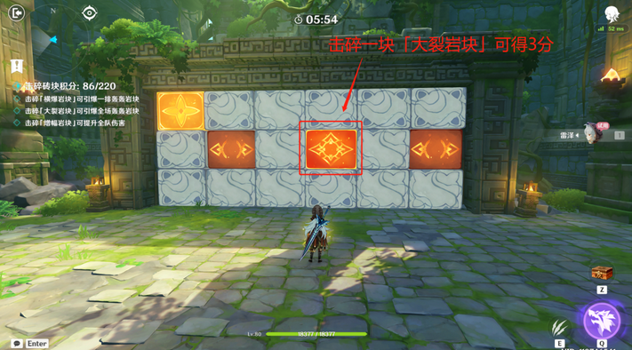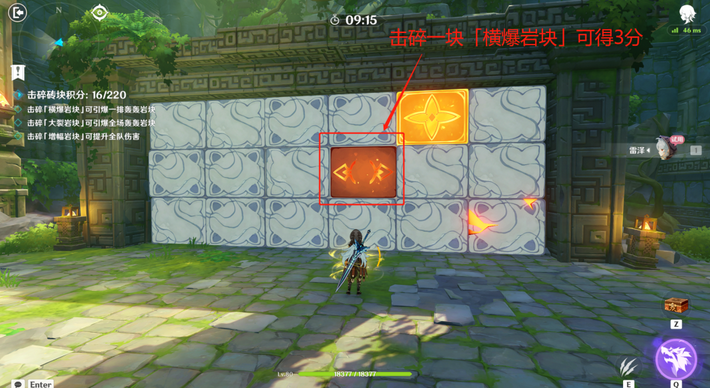 2、击碎一块「增幅岩块」可得3分,同时增加全队伤害并回复体力值。